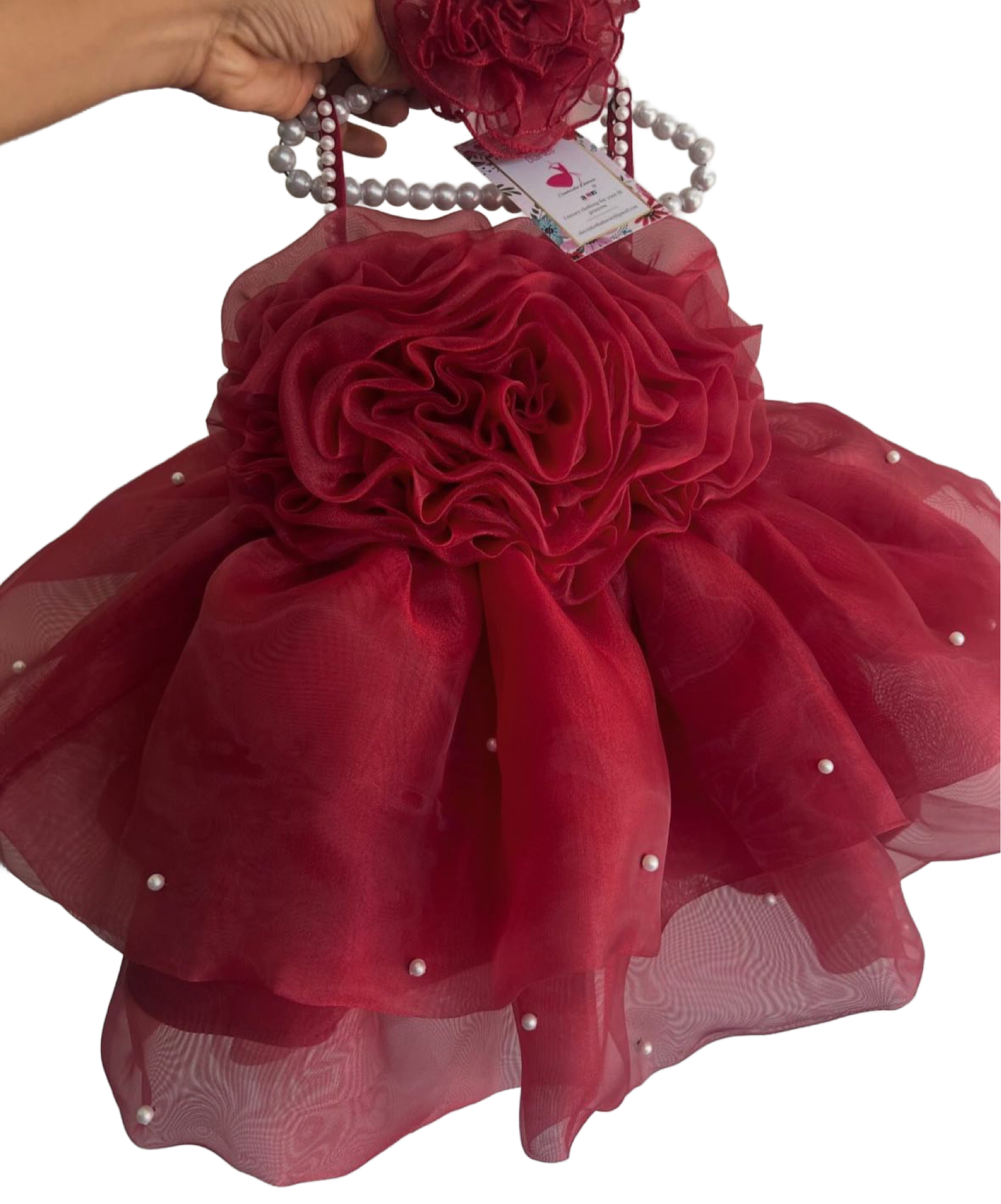 Beautiful red organza floral dress with satin,cotton lining.