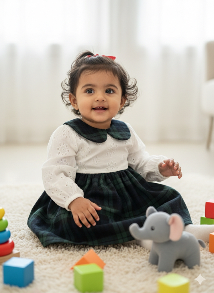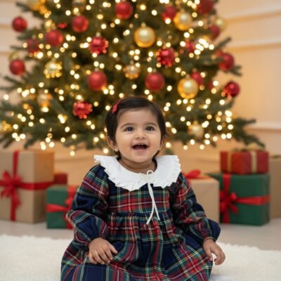 Beautiful white Hakoba with green tartan is a go to Christmas/Newyear outfit, good for winters